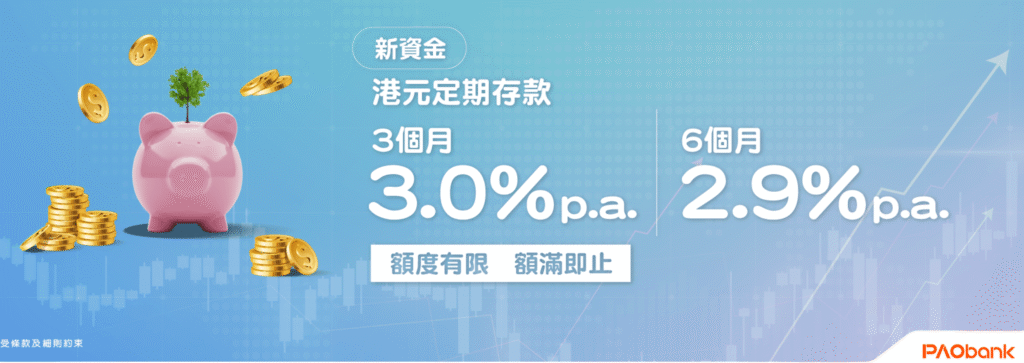 注意事項: 利率會根據銀行不時決定而釐定,建議開戶前查閱PAObank的最新條款。