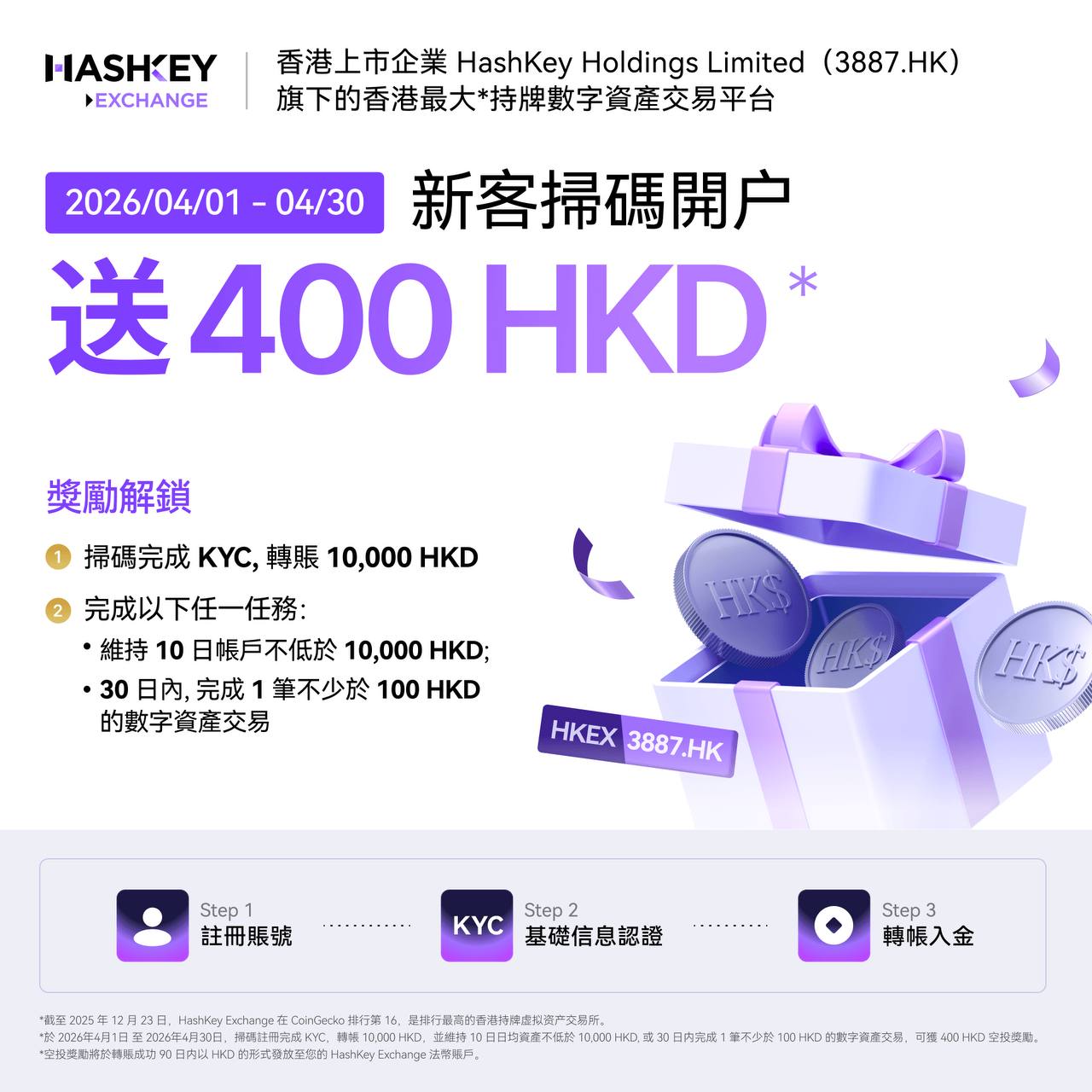 - 參與活動,即表示您已閱讀、理解並同意我們的標準條款和免責聲明:HashKey Exchange免責聲明。
