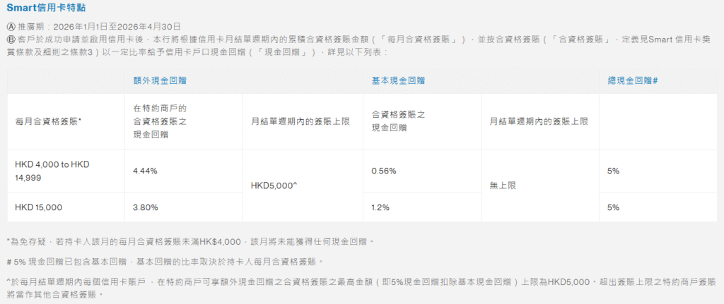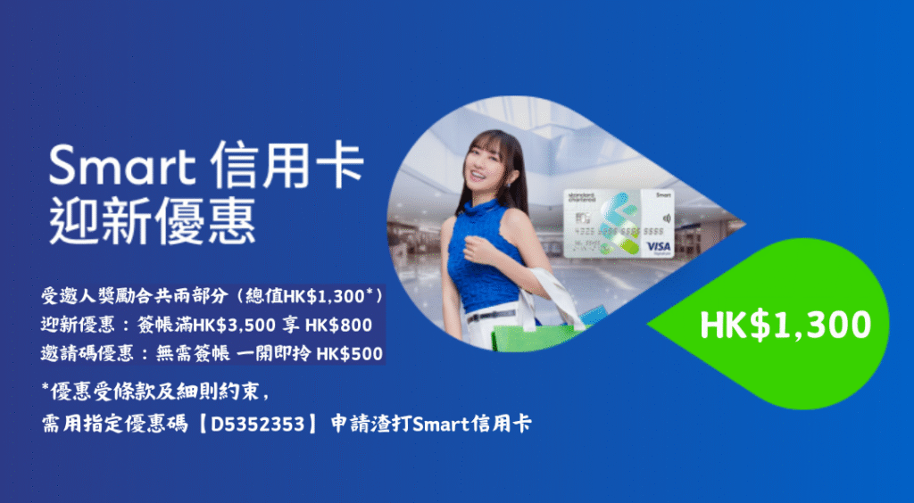【渣打Smart信用卡2026】獨家迎新高達HK$1,300現金回贈(受邀請享有額外HK$500現金),渣打Smart卡迎新優惠