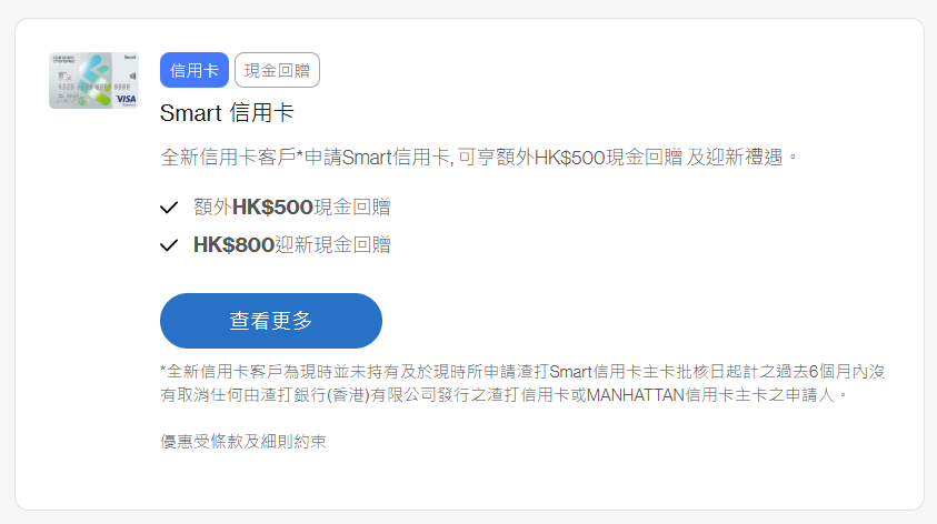 渣打Smart 卡 新客 迎新條件 (舊客、現有客:沒有)